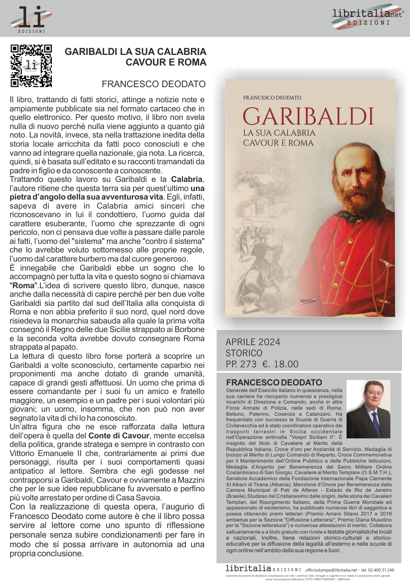 Garibaldi la sua Calabria Cavour e Roma a cura di Francesco Deodato edito da Libritalia